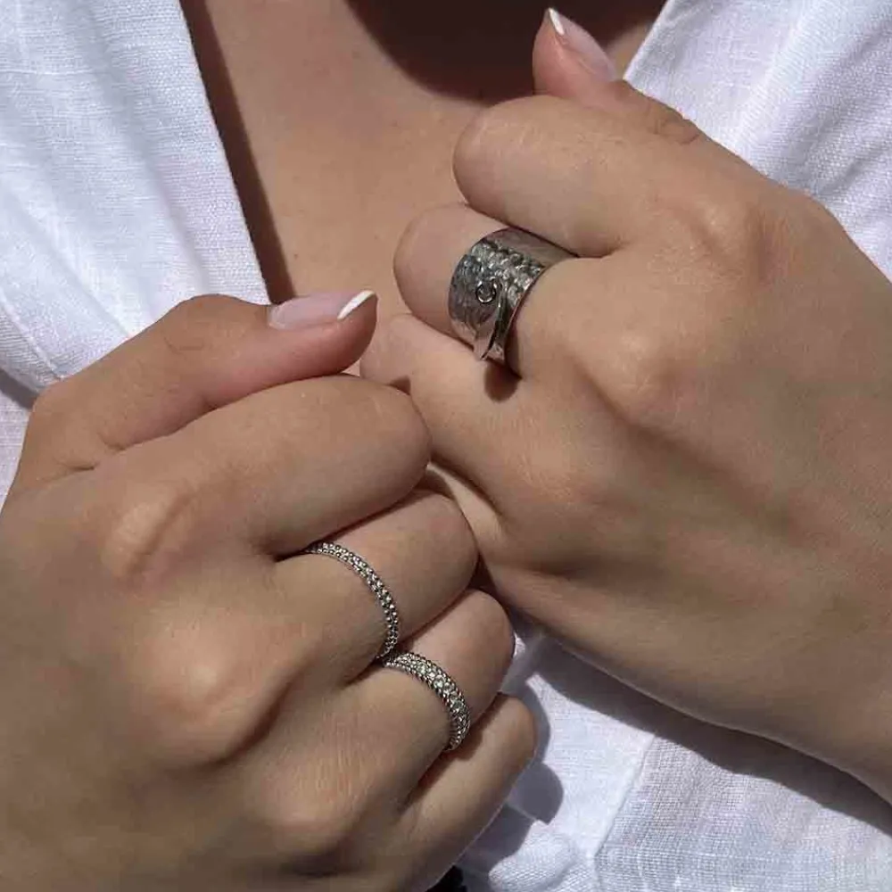 Bague en argent 925, signée By Jollia, composée d’un simple anneau orné de perles de chaque côté.