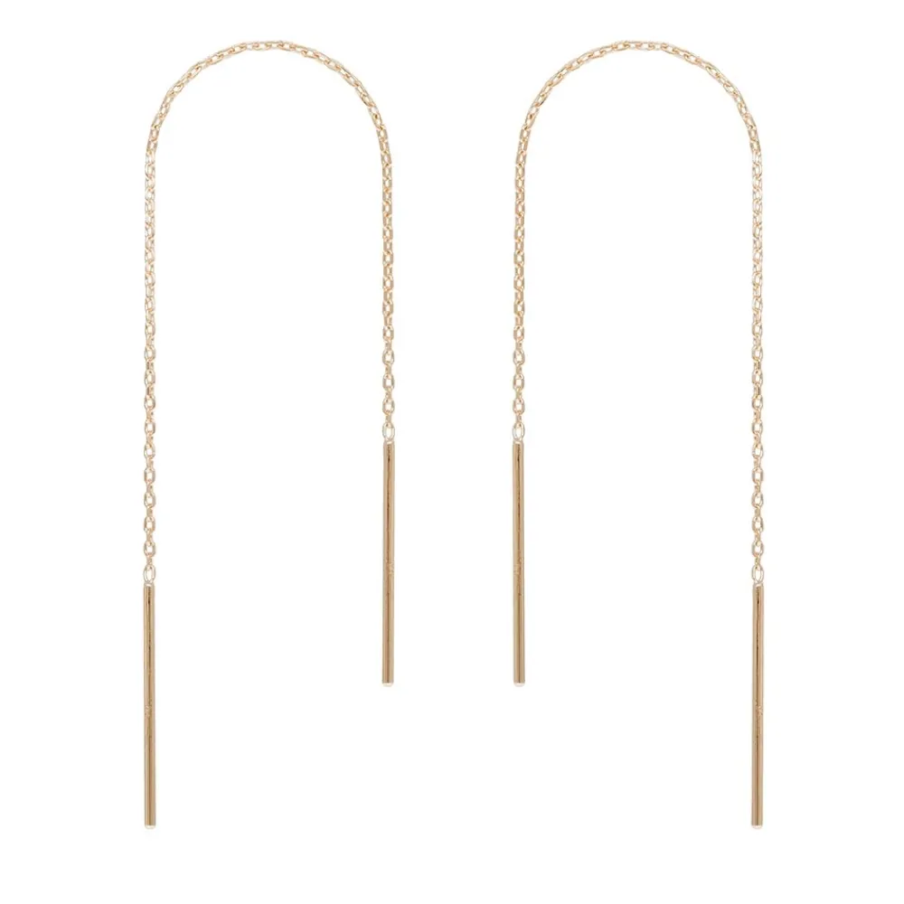 Ces boucles d’oreilles sont signées By Jollia et sont en plaqué or. Elles se composent d’une chaîne fine qui pend à l’avant comme à l’arrière du lobe.