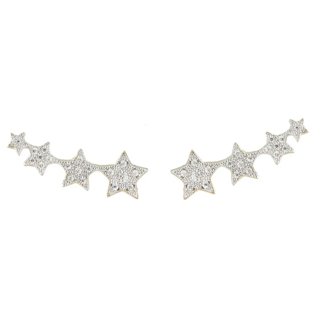 Ce chemin d’oreille en plaqué or sont agrémentés de 4 étoiles de tailles différentes en argent et brillantes est signé By Jollia.