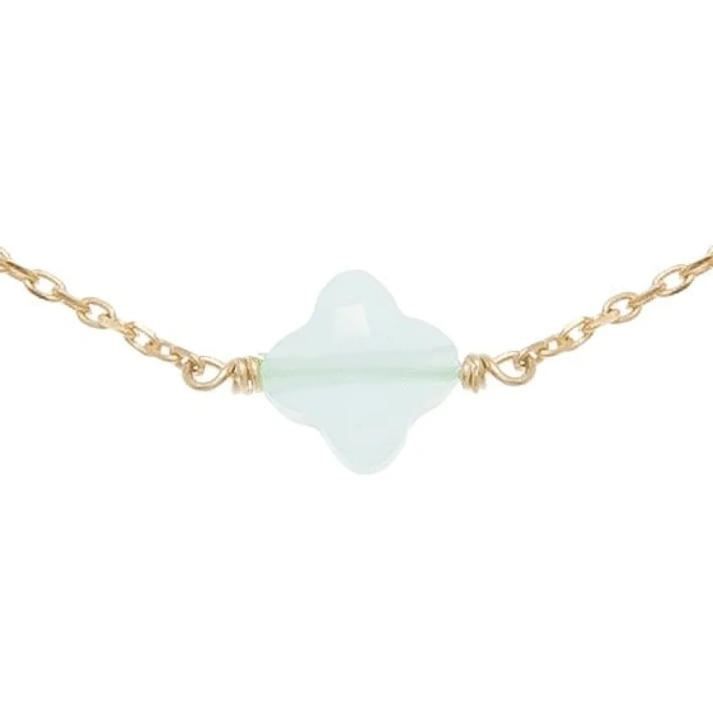 Collier en plaqué or composé d’un trèfle couleur aqua, signé by Jollia. Longueur du collier: 42cm dont 2cm de régla…