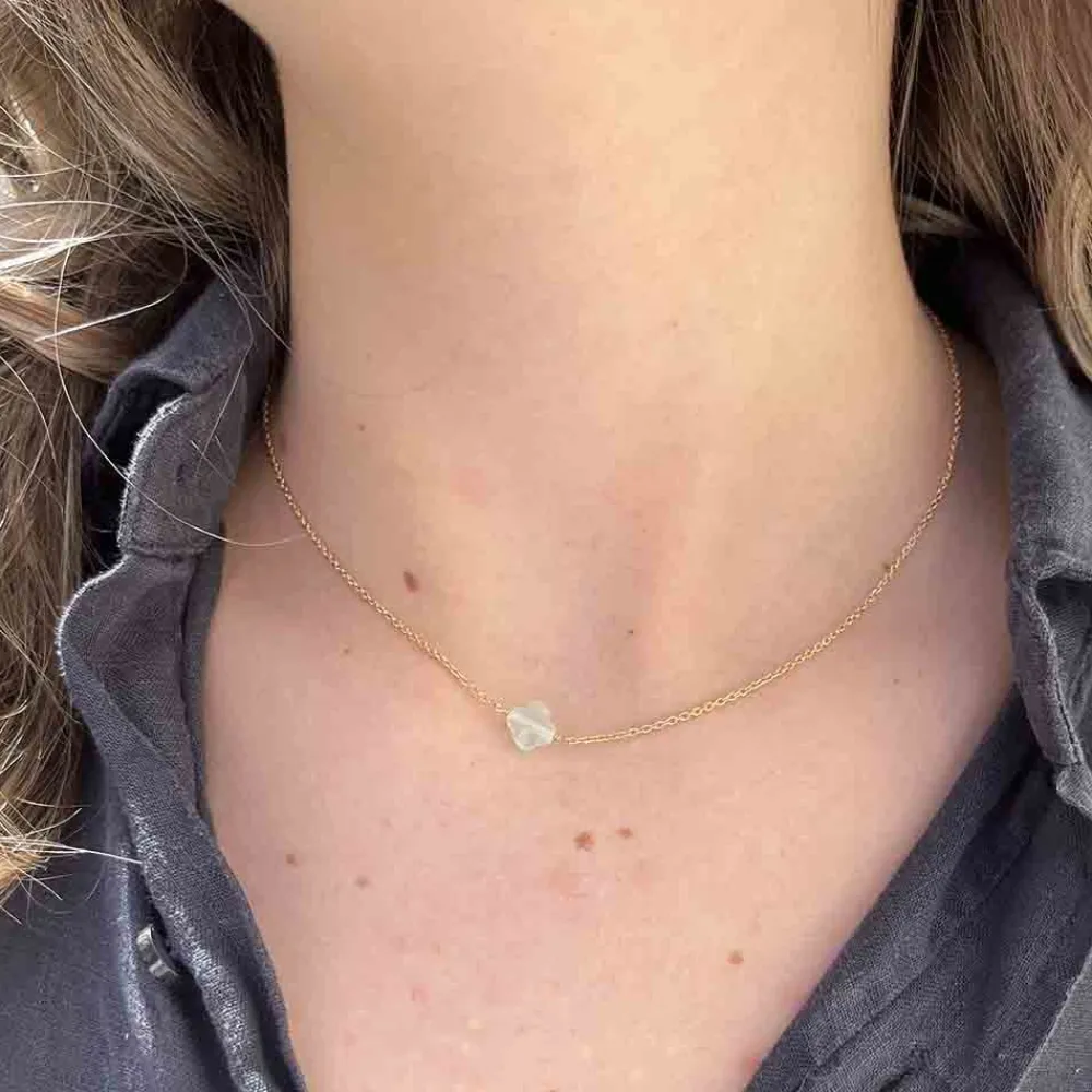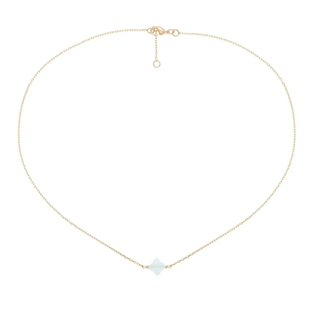 Collier en plaqué or composé d’un trèfle couleur aqua, signé by Jollia.