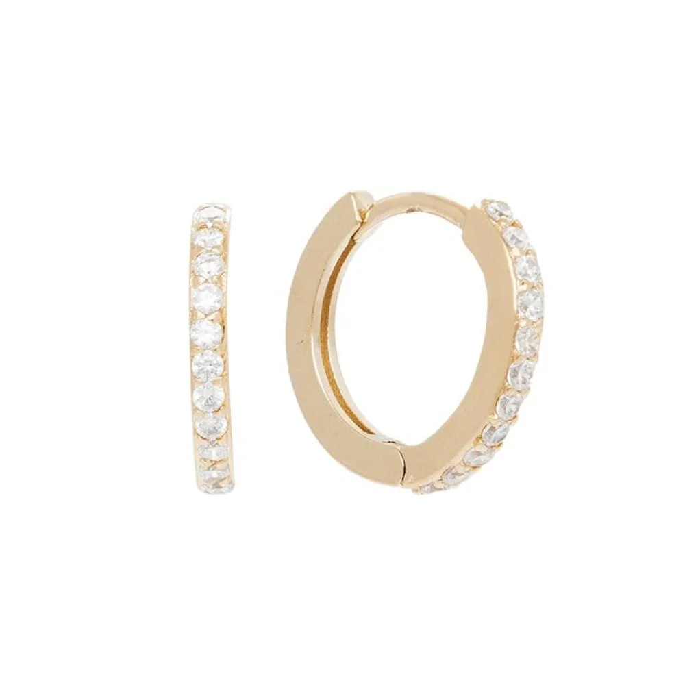 Ces créoles agrémentées de zircons blancs sont en plaqué or et signées By Jollia.
