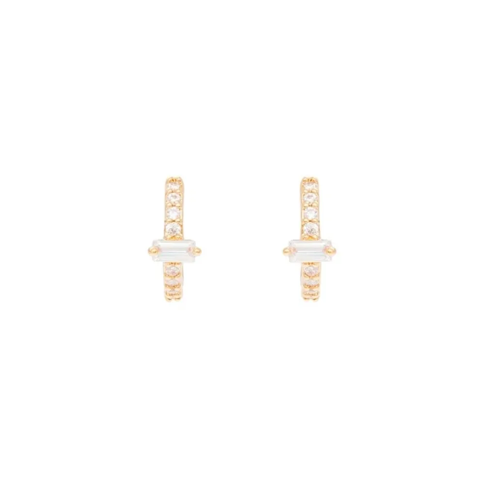 Ces mini créoles zircons et cristal blanc sont en plaqué or et signées By Jollia.Ces boucles mesurent 1 cm de diamèt…