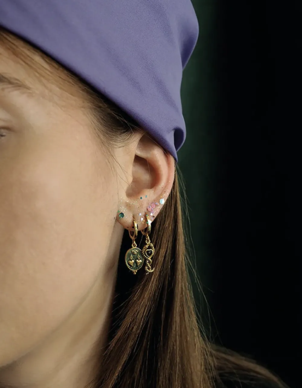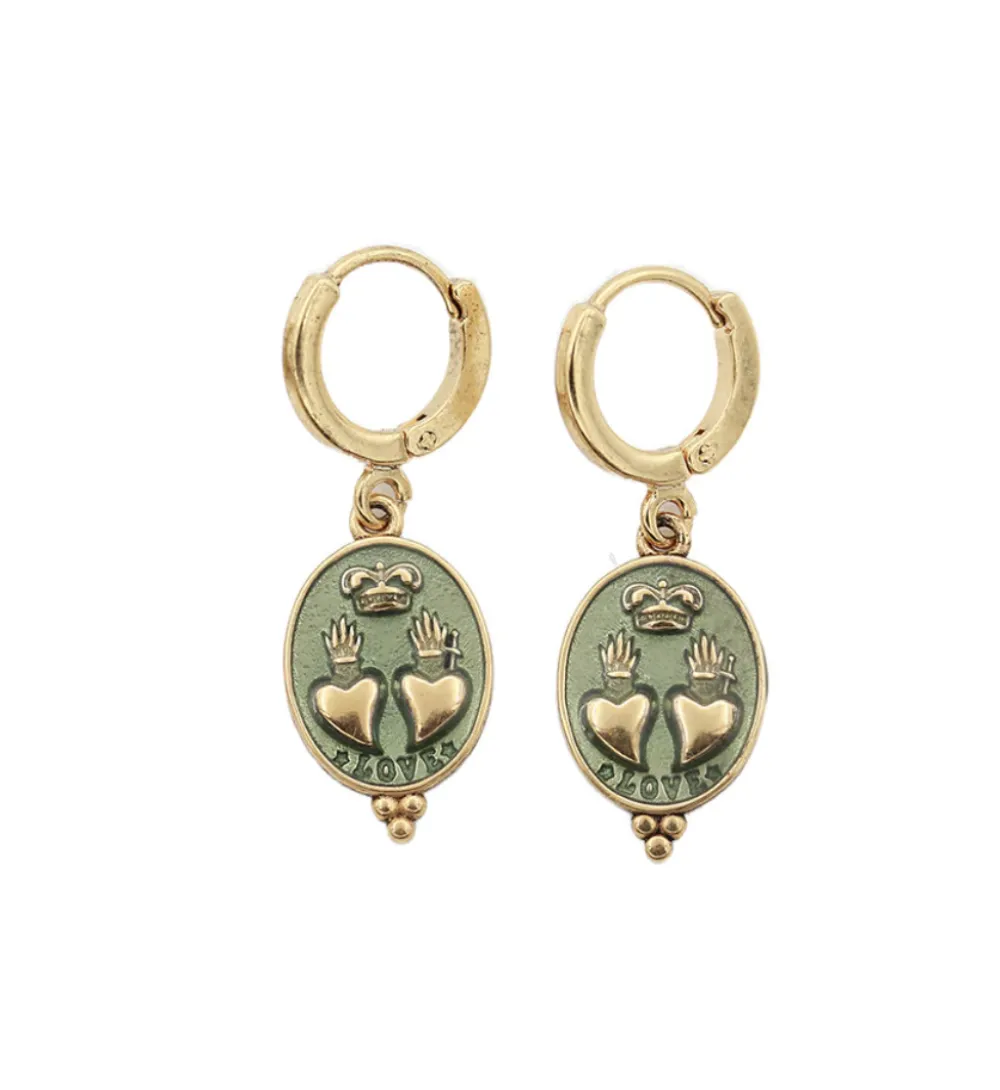 Boucles d’oreilles en laiton bain d’or, émail bleu transparent.