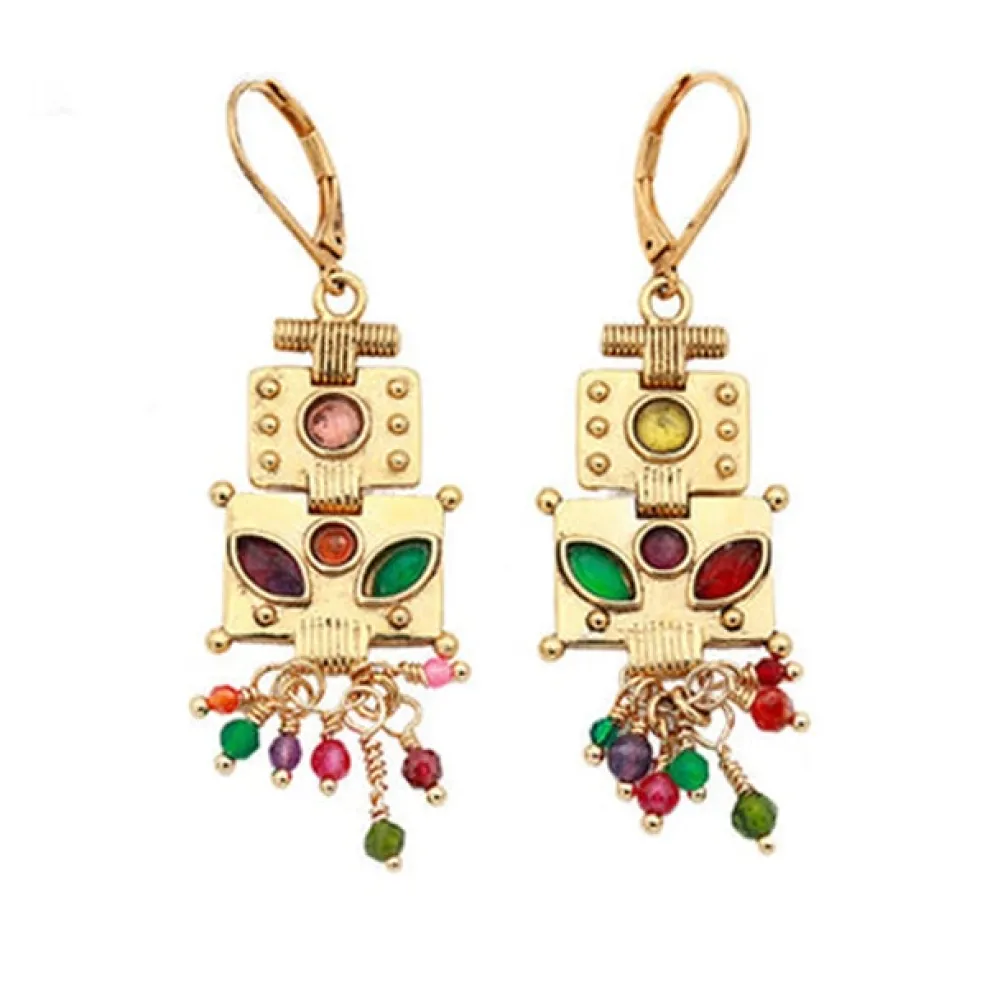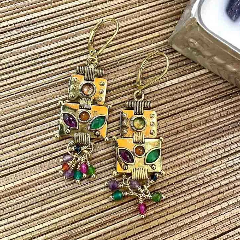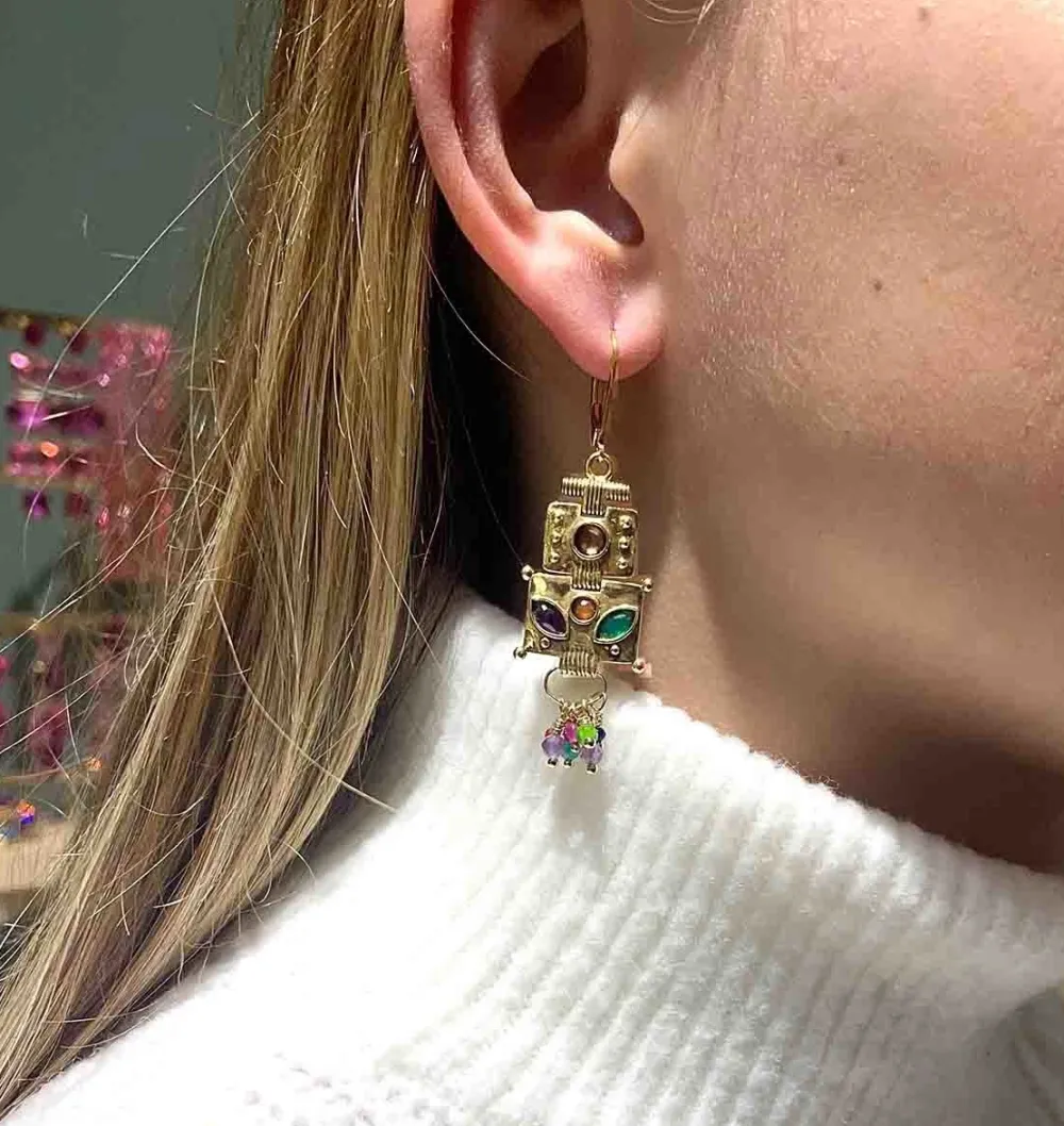 Boucles d’oreilles dorées à l’or fin et perlesmulticolores signées LA2L.