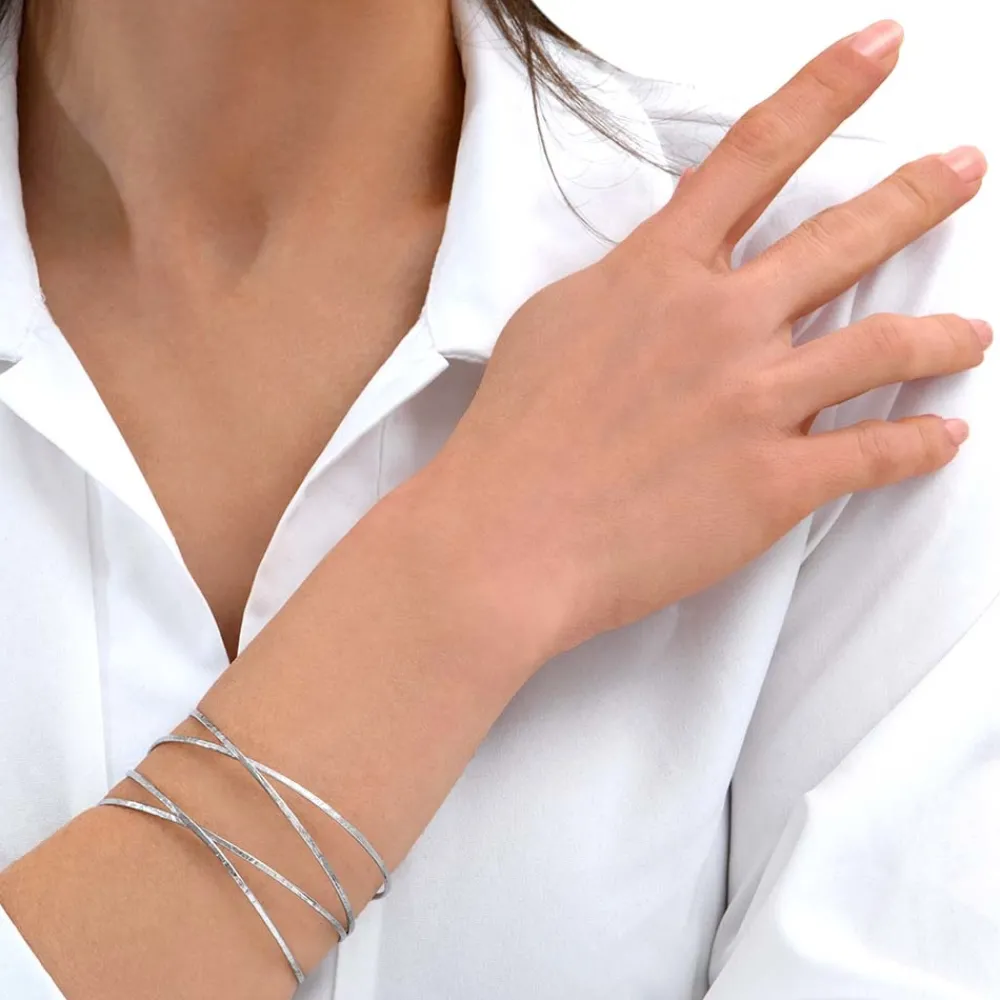 Siloé Bracelet Jonc croise double rangs acier Discount