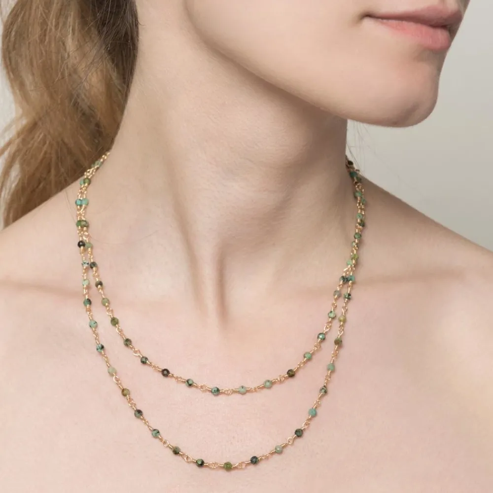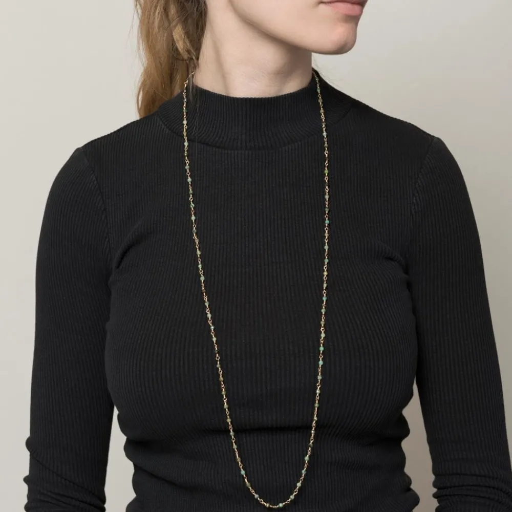 Élégant et raffiné, le Sautoir perles fines turquoise africaine (doré) de Siloé, il est parfait pour sublimer n’importe quelle tenue. . Ce sautoir est composé de petites perles en turquoise africaine et une chaine en acier inoxydable doré.