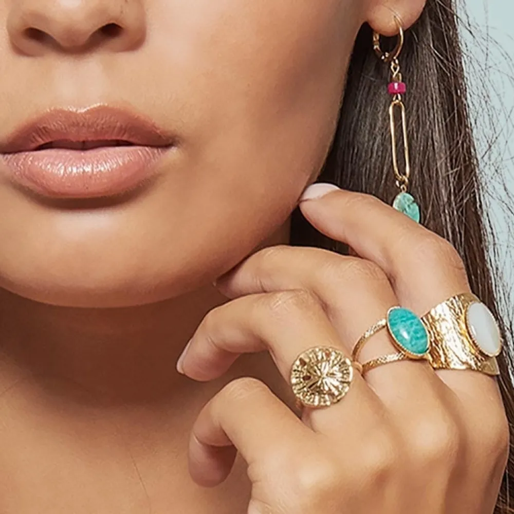 Bague de la collection Oursin en plaqué or 3 microns signée Viadoli. Elle est ajourée et gravée d’une petite fleur.
