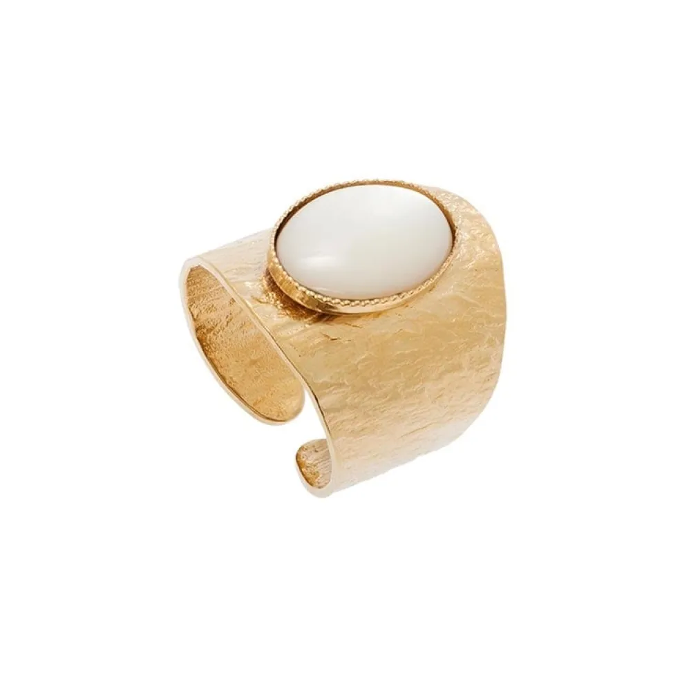 Bague de la collection Nymphéa en plaqué or 3 microns signée Viadoli. Elle est ornée d’une pierre semi-précieuse en nacre.