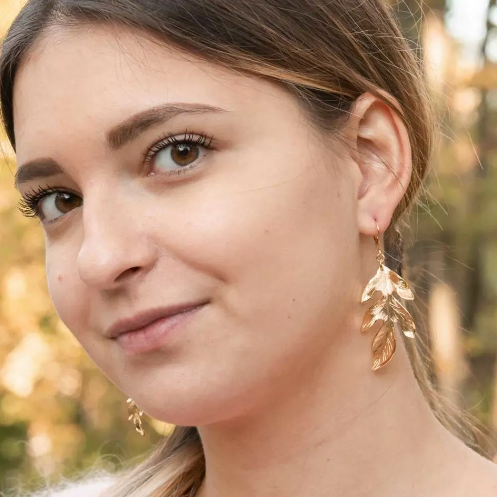 Boucles larges pendantes dorées asymétriques signées Viadoli, dorées à l’or fin 24k.