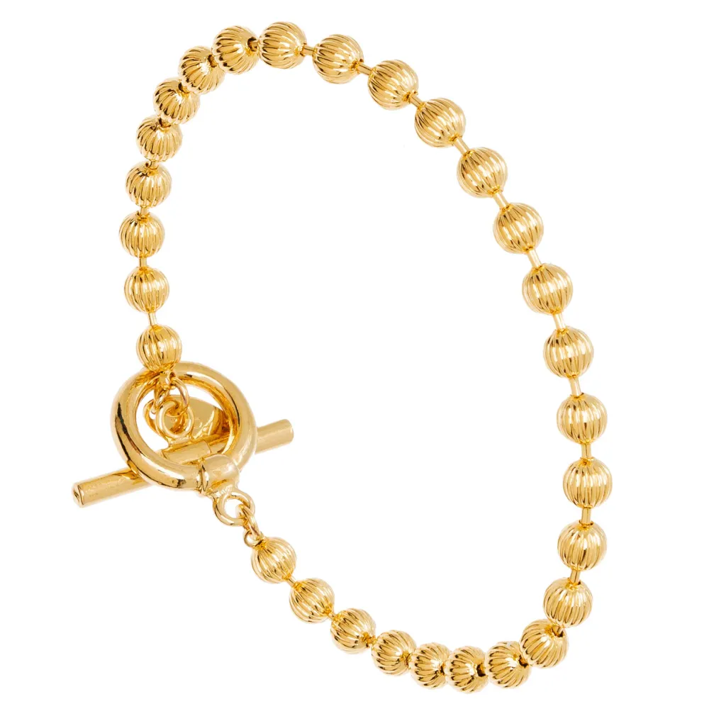 Bracelet chaîne billes dorées signé Viadoli, doré à l’or fin.
