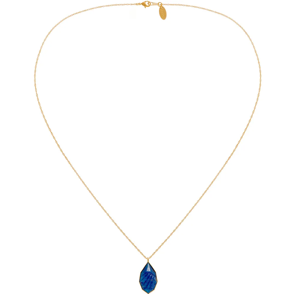 Collier pierre bleu ovale signé Viadoli, doré à l’or fin 24k.