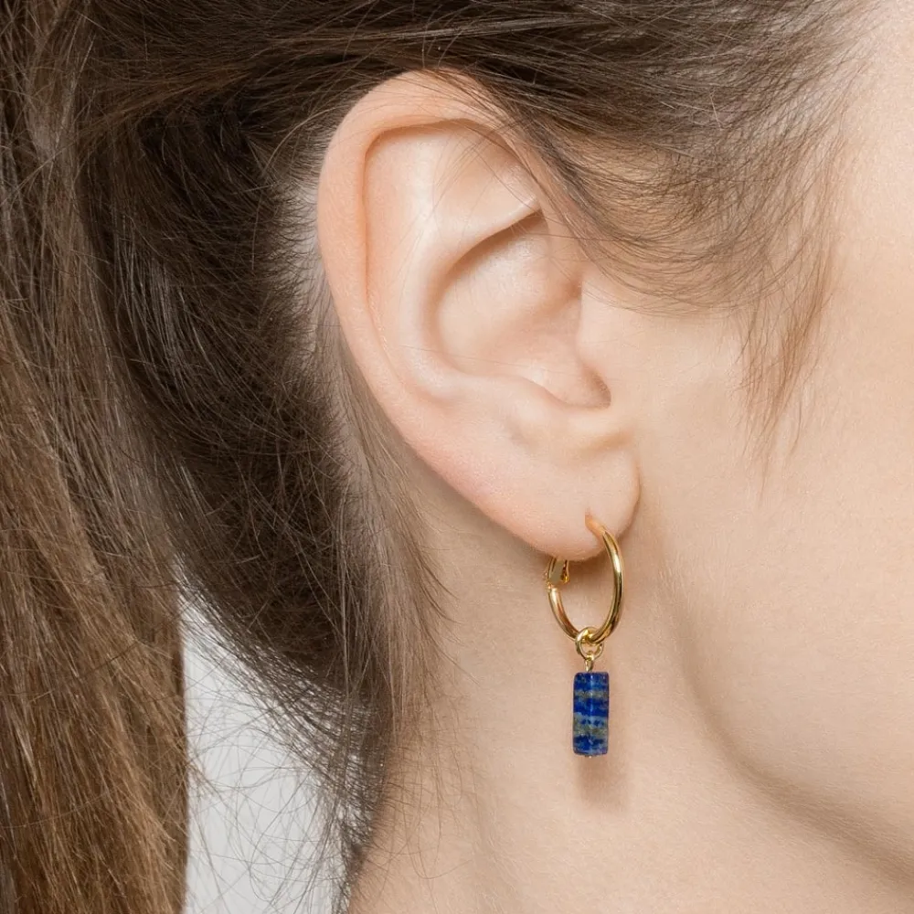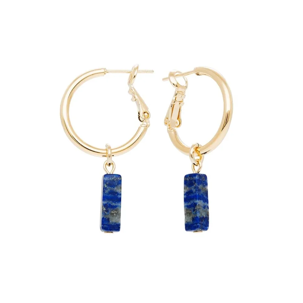 Les créoles sont ornées d’une pierre rectangulaire en lapis lazuli.