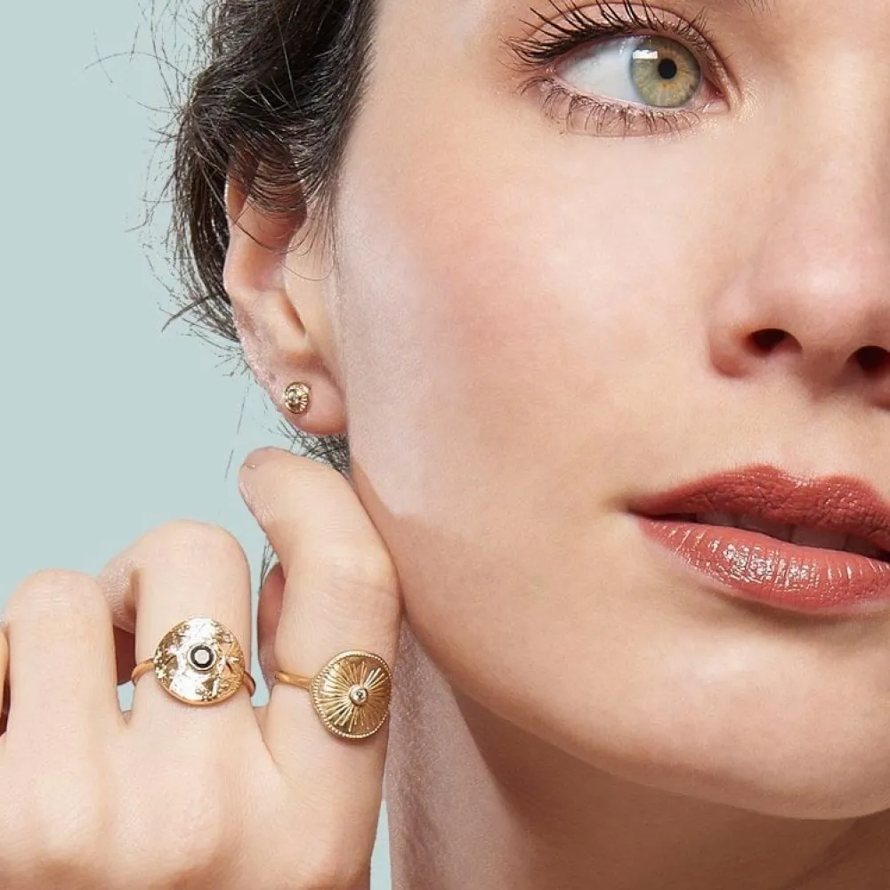 Cette bague déesse by Jollia est composée d’une médaille texturée sertie d’une pierre onyx en son centre. Retrouvez …