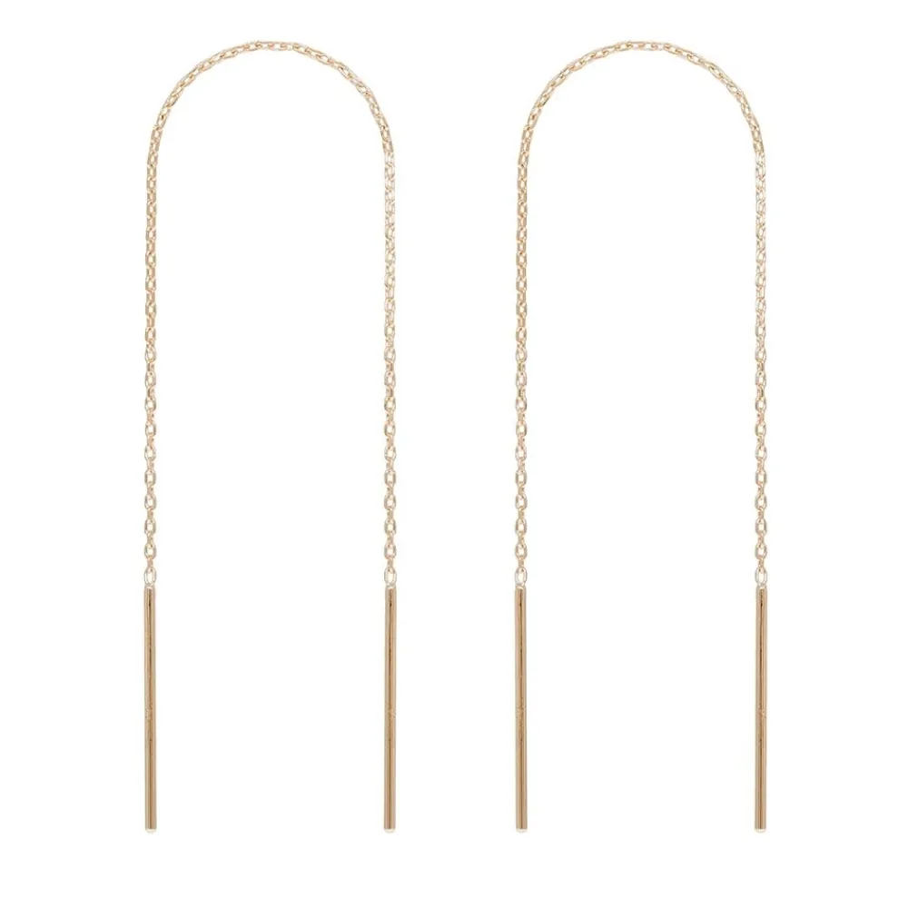 Ces boucles d’oreilles sont signées By Jollia et sont en plaqué or. Elles se composent d’une chaîne fine qui pend à l’avant comme à l’arrière du lobe.