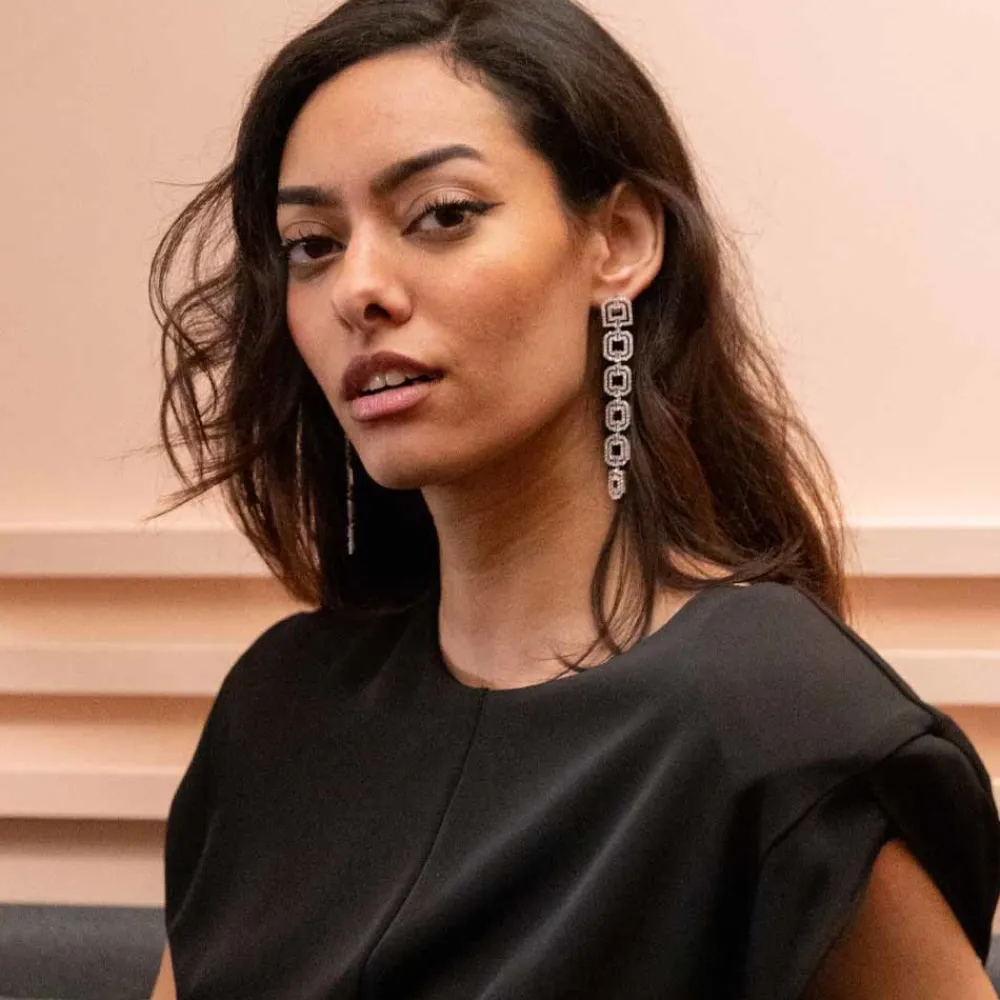 Des boucles d’oreilles pendantes et scintillantes argenté parfaite pour être élégente pour les fêtes.