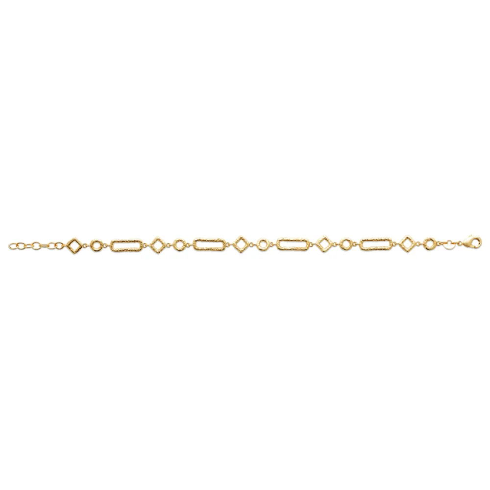 Signé By Jollia, bracelet plaqué or aux motifs géométriques et effet irrégulier du métal brossé lui donnant une p…