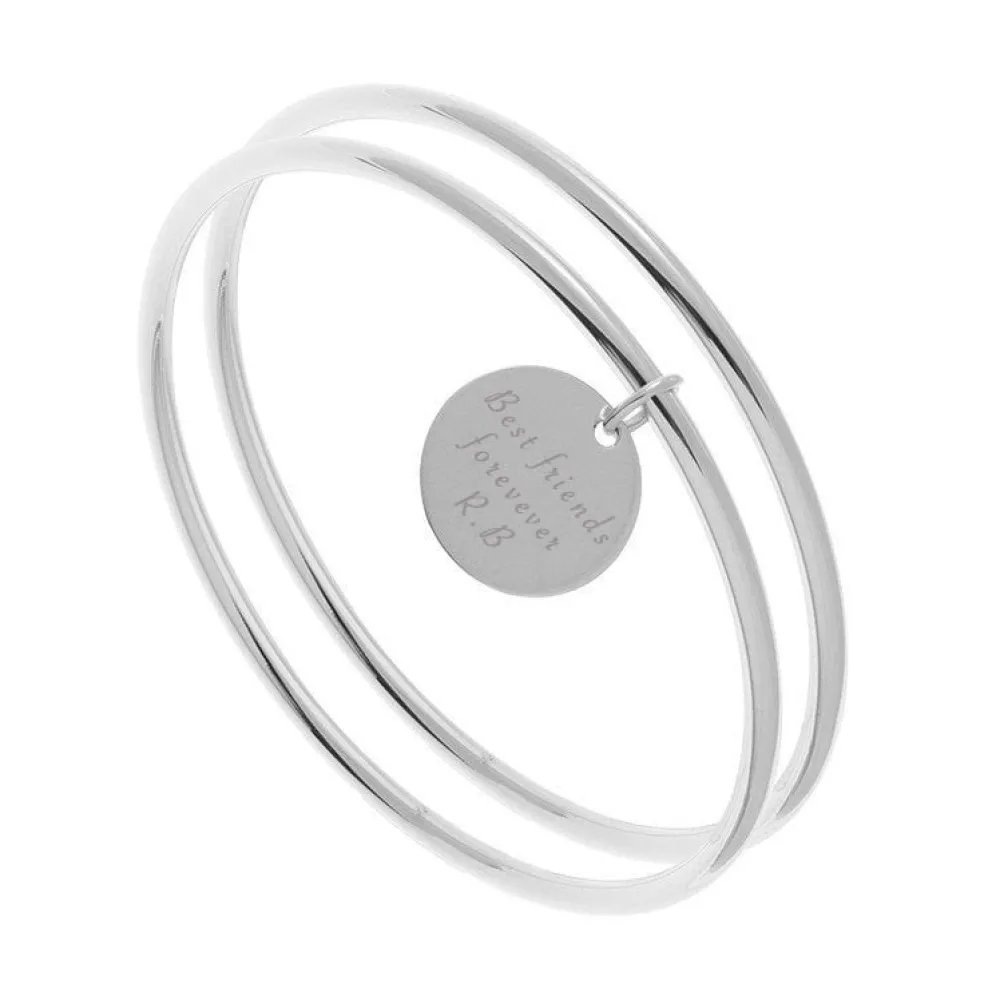 Ce bracelet jonc médaille à graver est signé By Jollia. Il est en argent véritable. Nous vous proposons également de le porter avec un deuxième jonc simple.