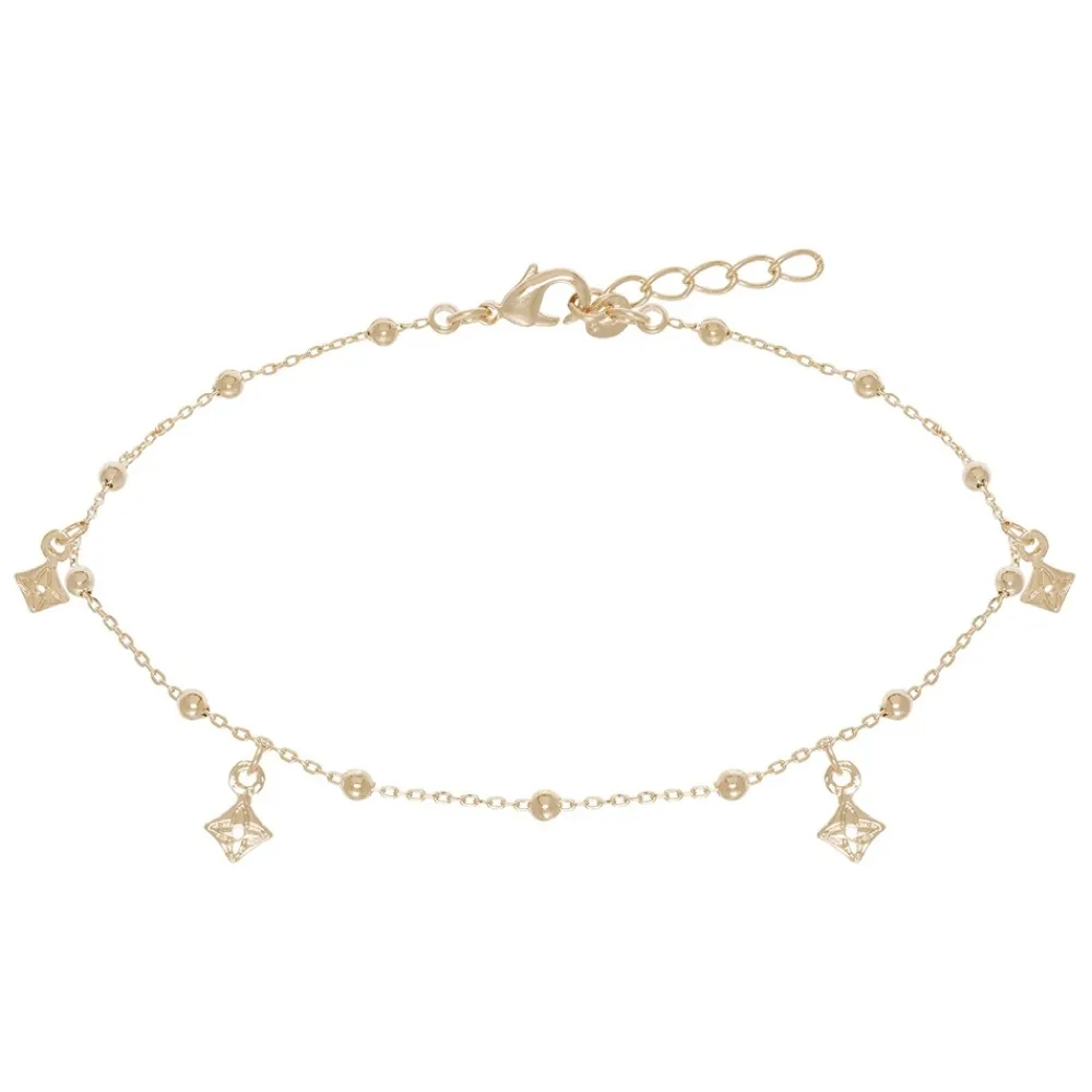 Bracelet chaîne de cheville billes et breloques en plaqué or 3 microns signé By Jollia.