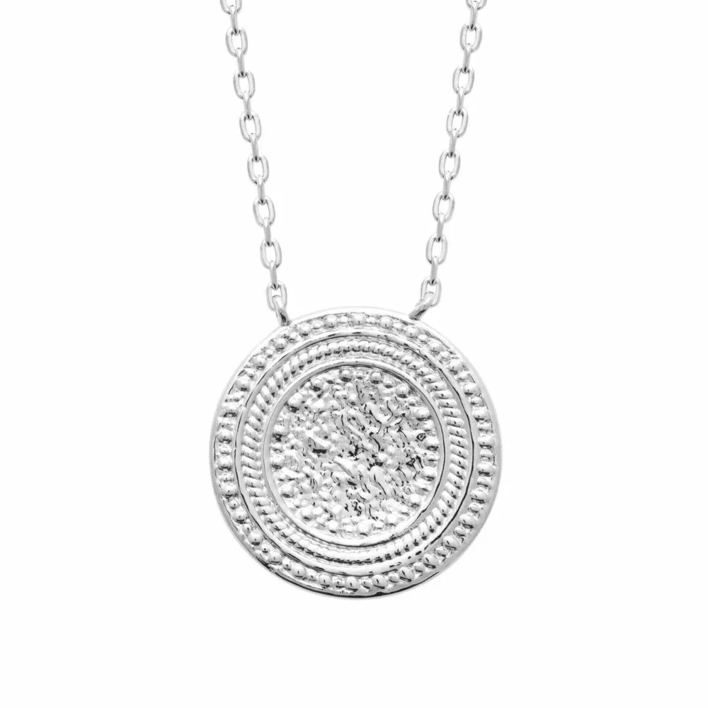 Ce collier médaille signé ByJollia en argent est composé d’une médaille gravée et chaîne émaillée.