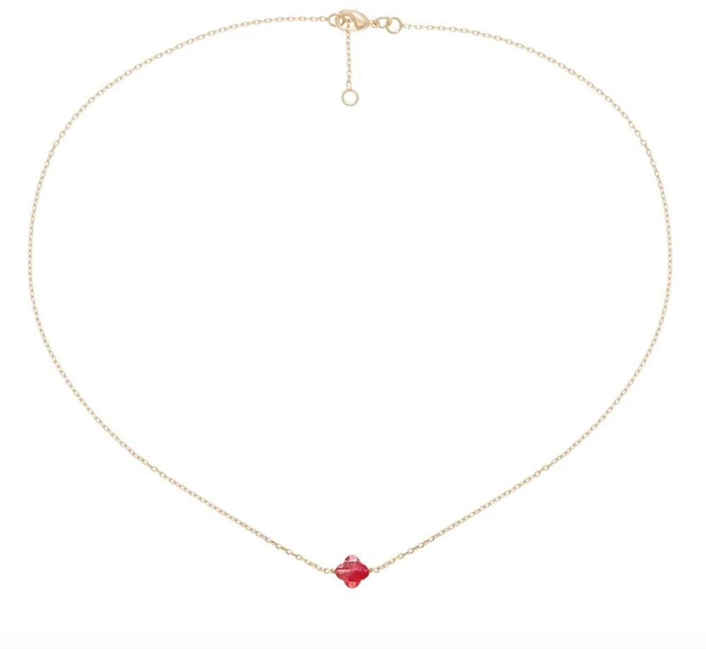 Collier en plaqué or composé d’un trèfle en cristal teinté de couleur rouge, signé by Jollia.