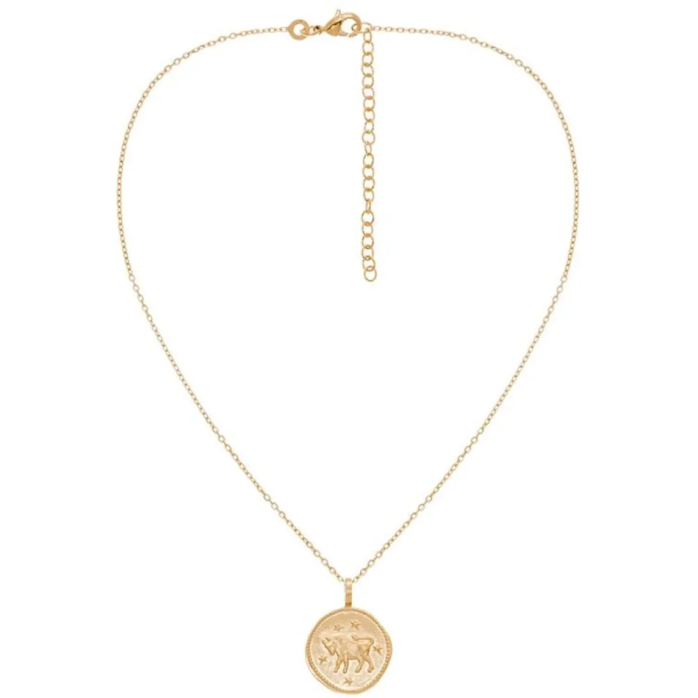 Collier signe astrologique Taureau en plaqué or 3 microns By Jollia. Longueur chaine : 45 cm dont 5 cm de chaine de ré…