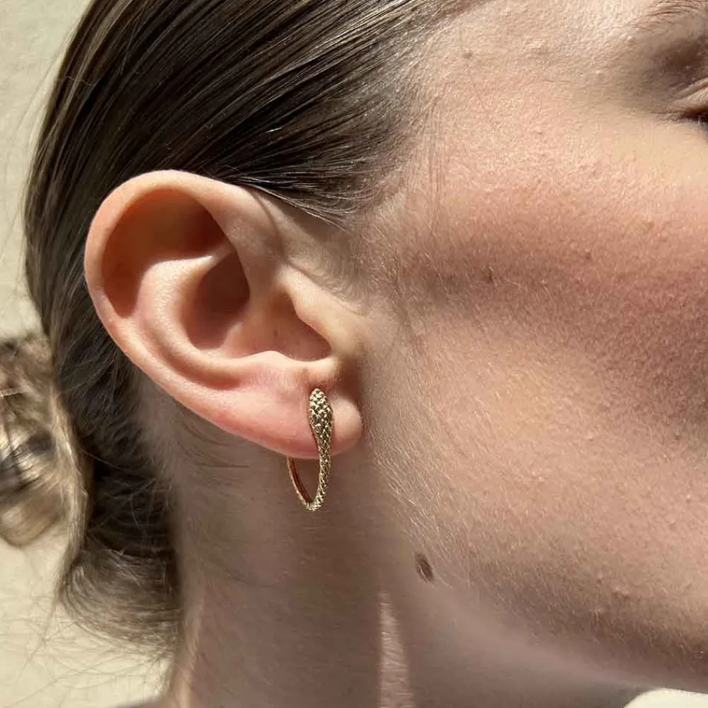 Ces mini créoles serpent texturées sont en plaqué or et signées By Jollia.Ces boucles mesurent 2.2 cm de diamètre. …