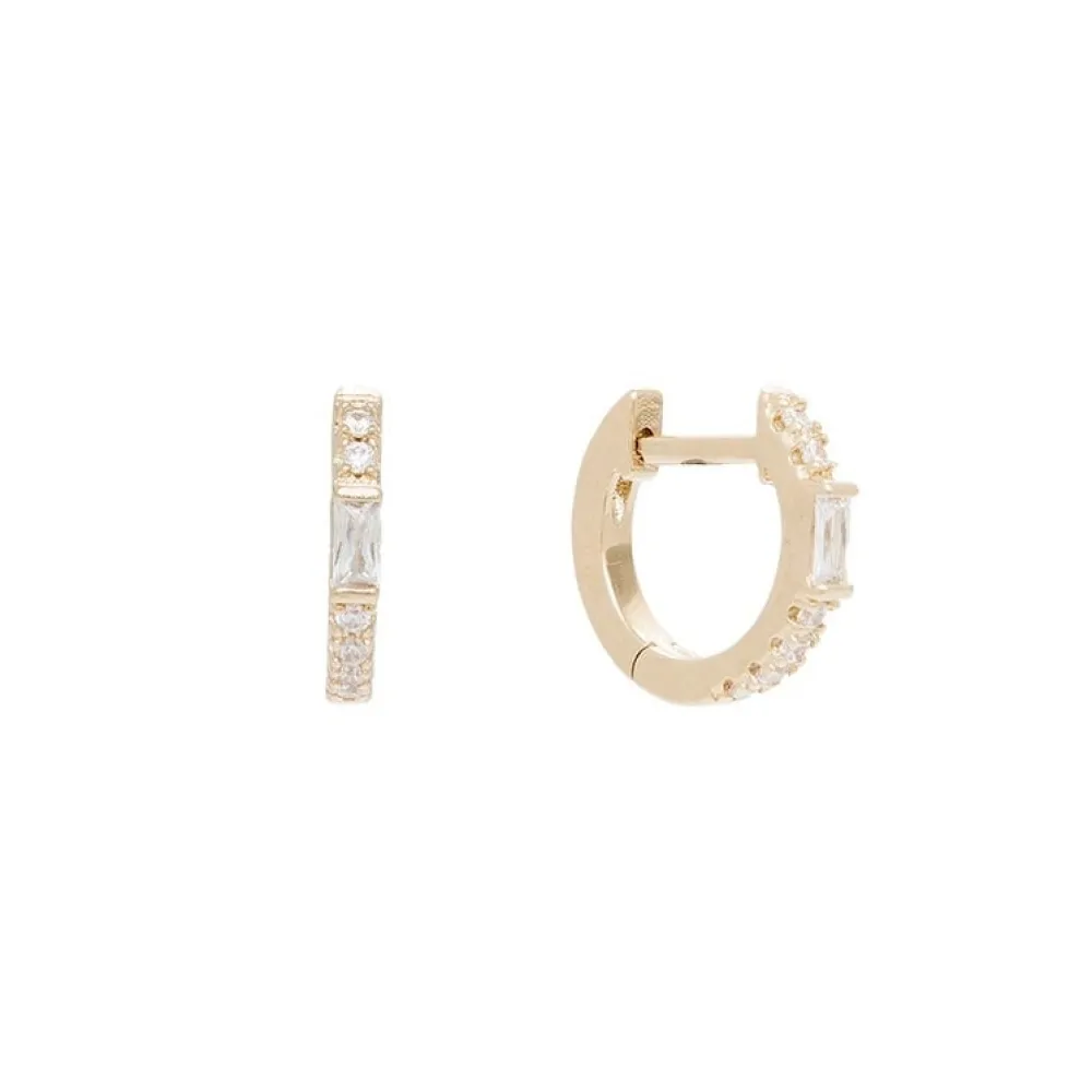 Ces mini créoles agrémentées de zircons et de cristal sont en plaqué or et signées By Jollia.