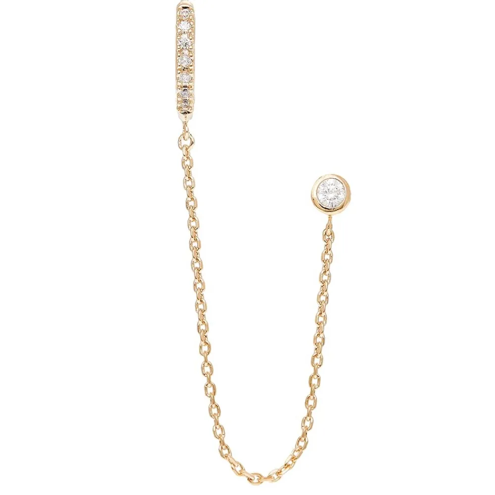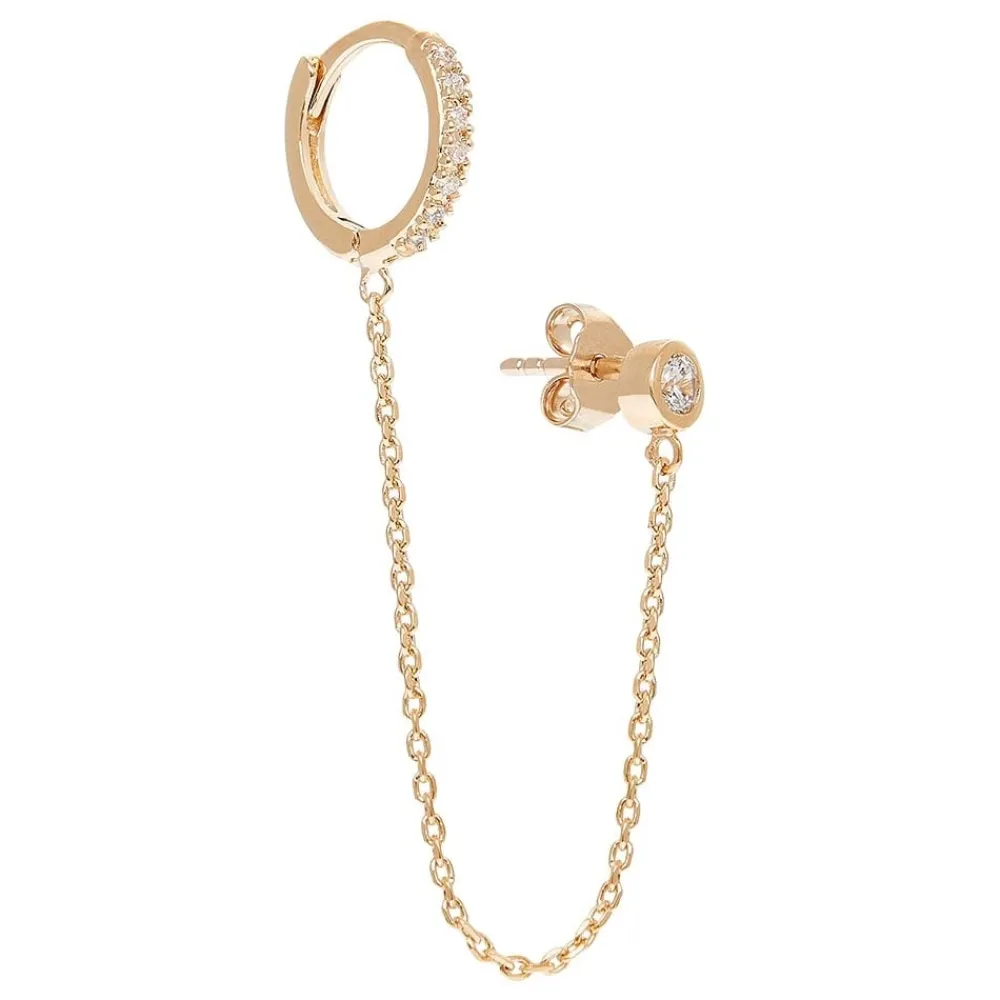 Mono boucle créole et puce zircon en plaqué or et signées By Jollia.