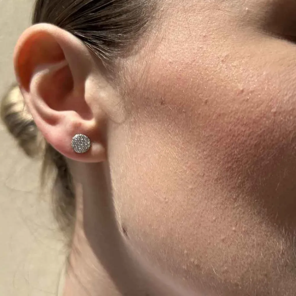 Ces puces mini rondes, en argent et brillantes sont signées By Jollia.