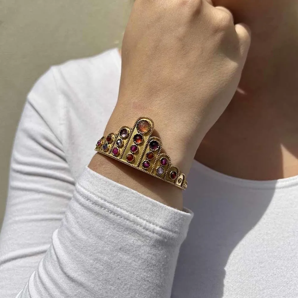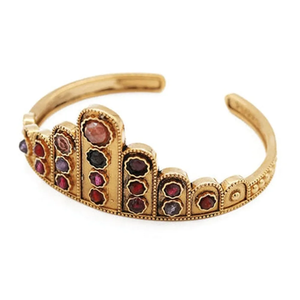 Bracelet manchette en laiton bain d’or 24 carats et pierres semi précieuses.