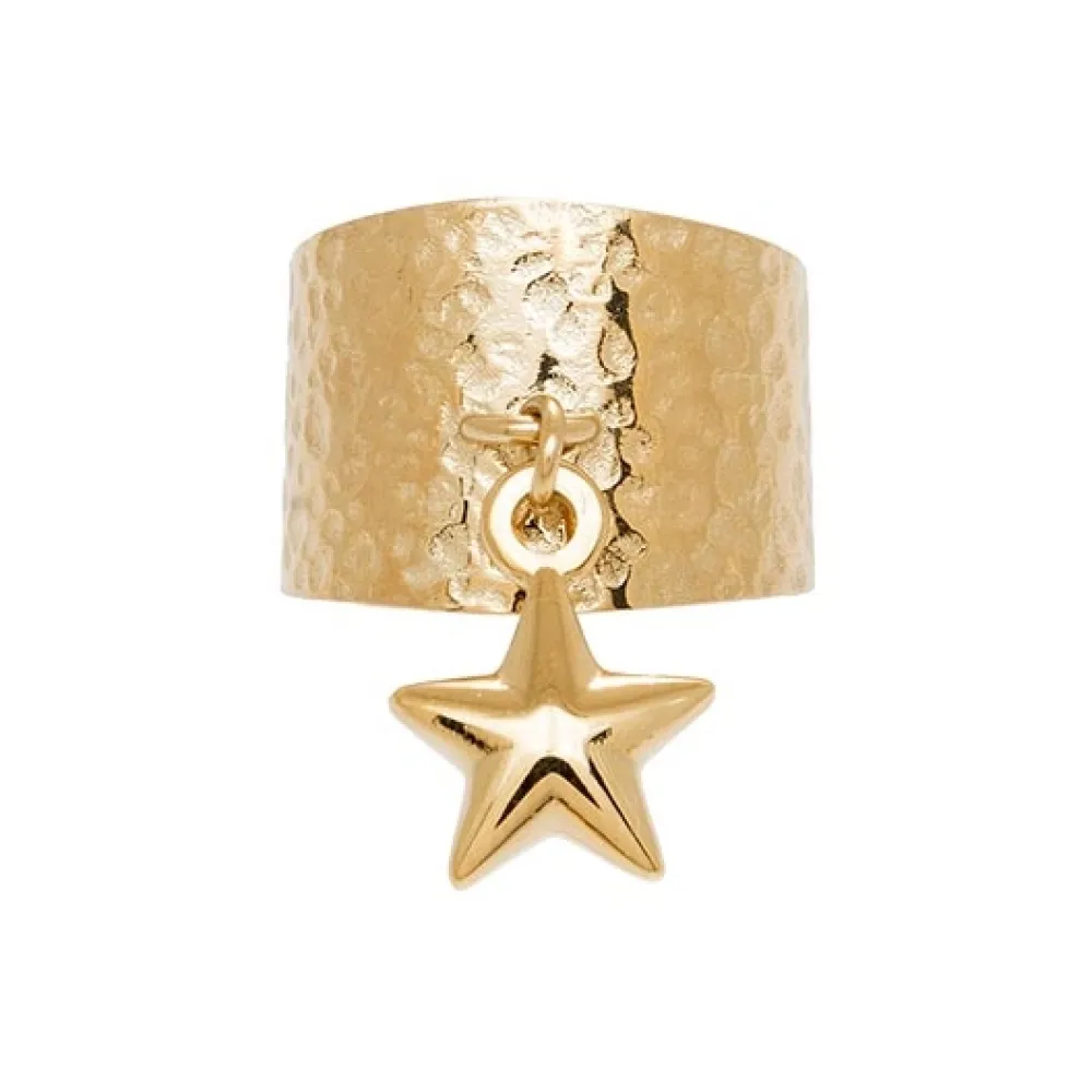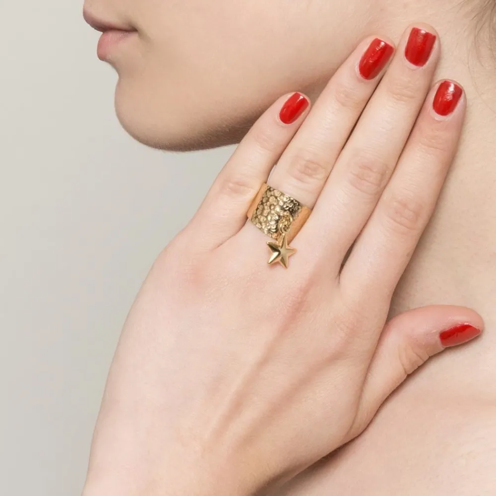 Bague large martelée pendentif étoile en acier chirurgical trempé dans un bain doré sélectionnée par Jollia.