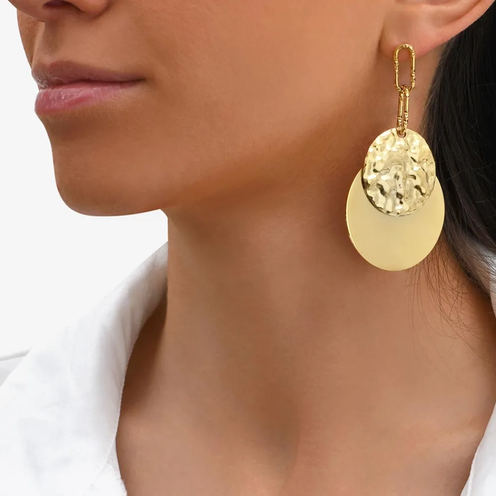 Ces boucles d’oreilles en acier chirurgical signées Siloé Paris, sont pendantes martelées.