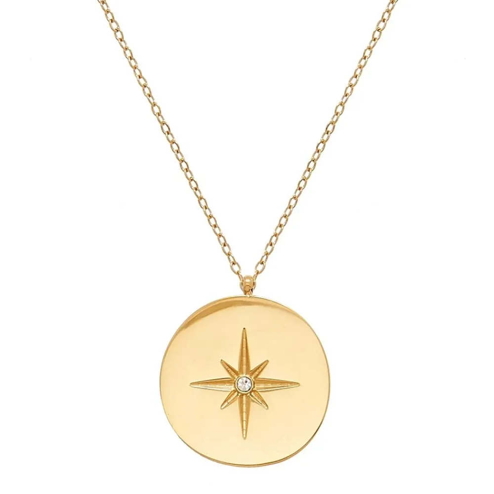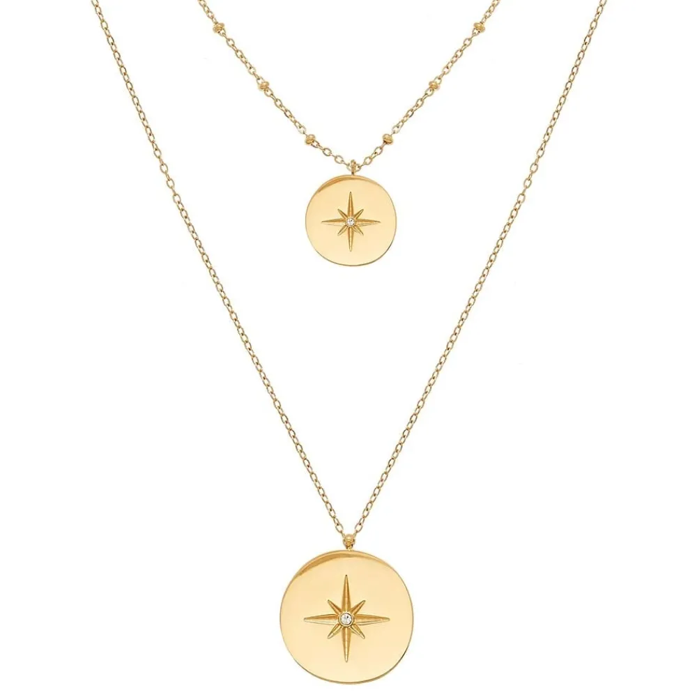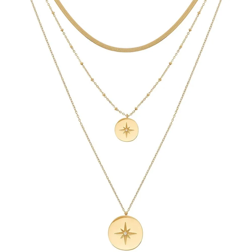 Collier multi rangs effet serpent et pendentif étoile polaire. Il est en acier chirurgical trempé dans un bain doré.