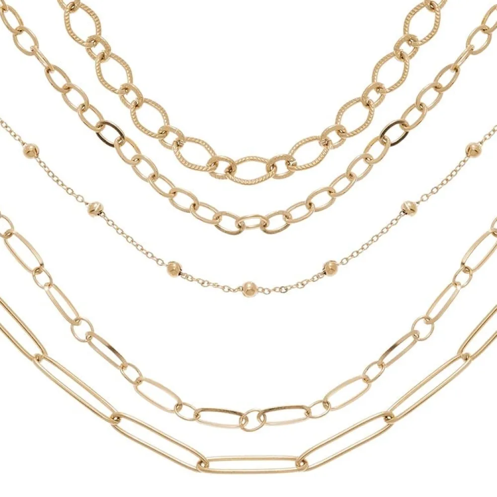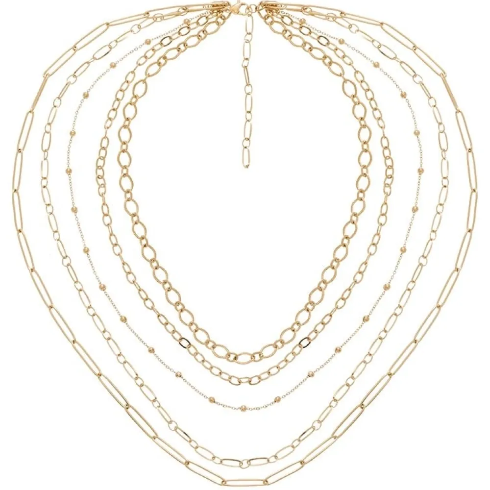 Collier multirangs maillons en acier chirurgical trempé dans un bain doré signé Siloé Paris.Les chaînes font respec…
