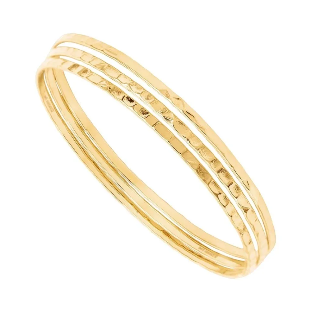 Trio de bracelets jonc triple martelés, signé Siloé.