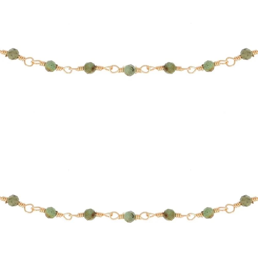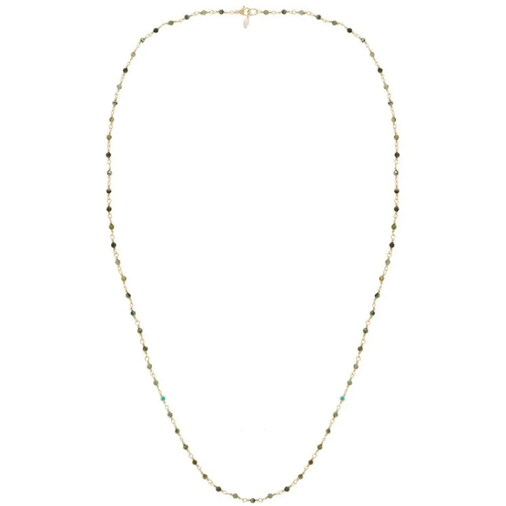 Élégant et raffiné, le Sautoir perles fines turquoise africaine (doré) de Siloé, il est parfait pour sublimer n’importe quelle tenue. . Ce sautoir est composé de petites perles en turquoise africaine et une chaine en acier inoxydable doré.