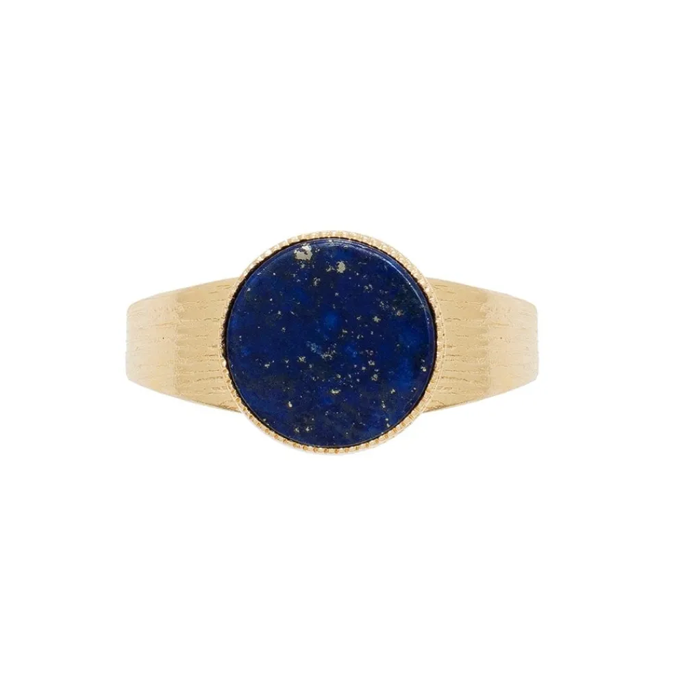 Bague double anneau dotée d’une pierre ronde en lapis lazuli, en plaqué or 3 microns signée Viadoli.