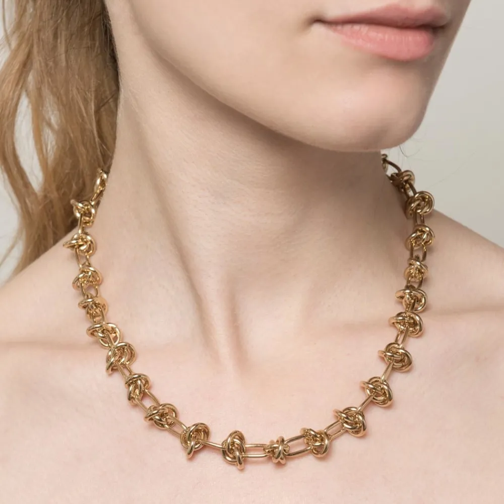 Collier maillons noué Viadoli de la collection Sadanga en laiton doré à l’or fin 24 carats sans nickel.